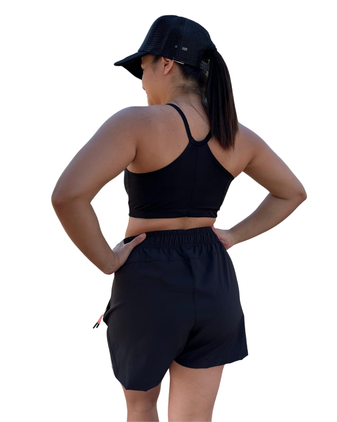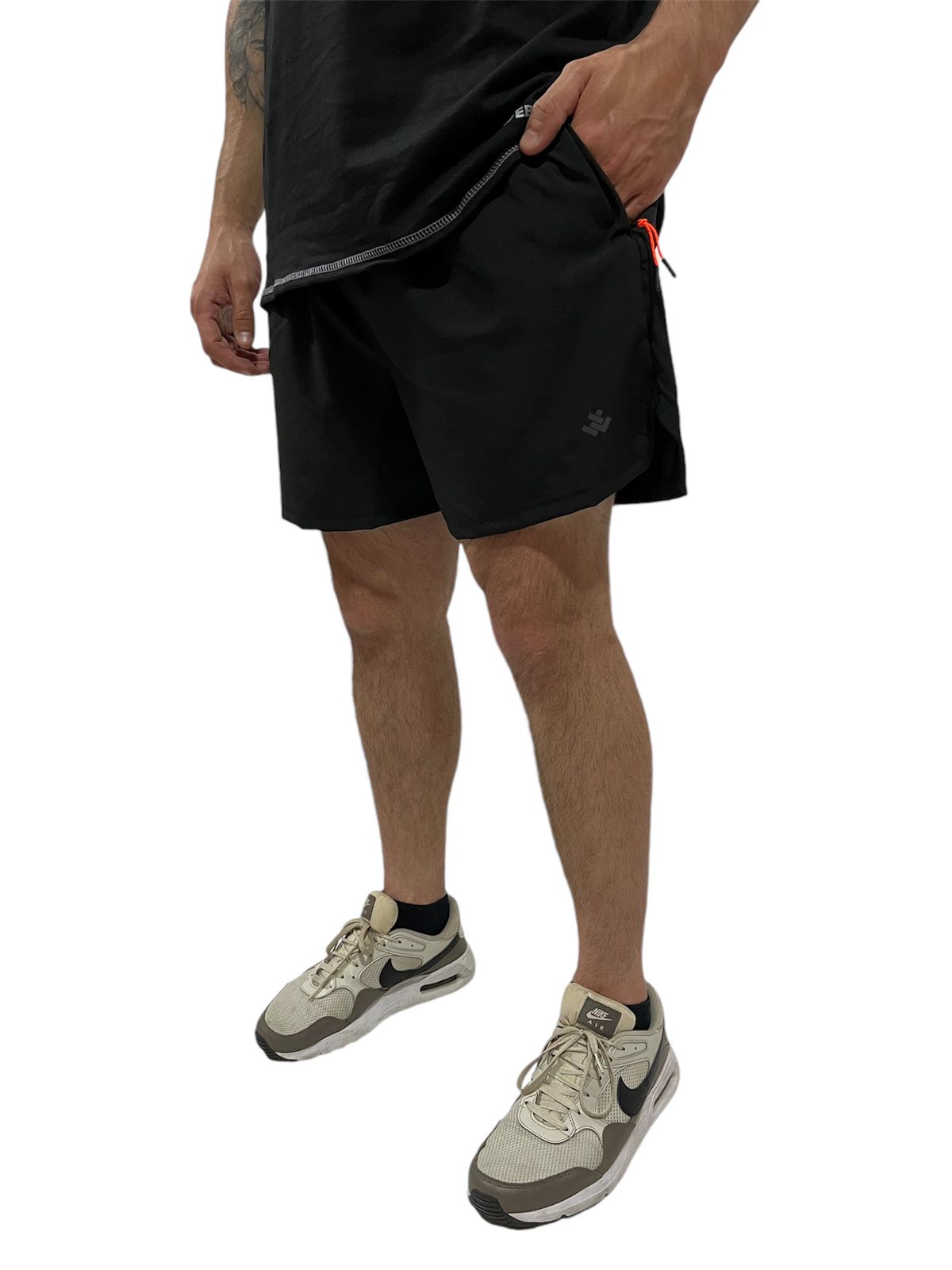 Short confeccionado en microfibra, con cierres laterales, vivos color naranja.